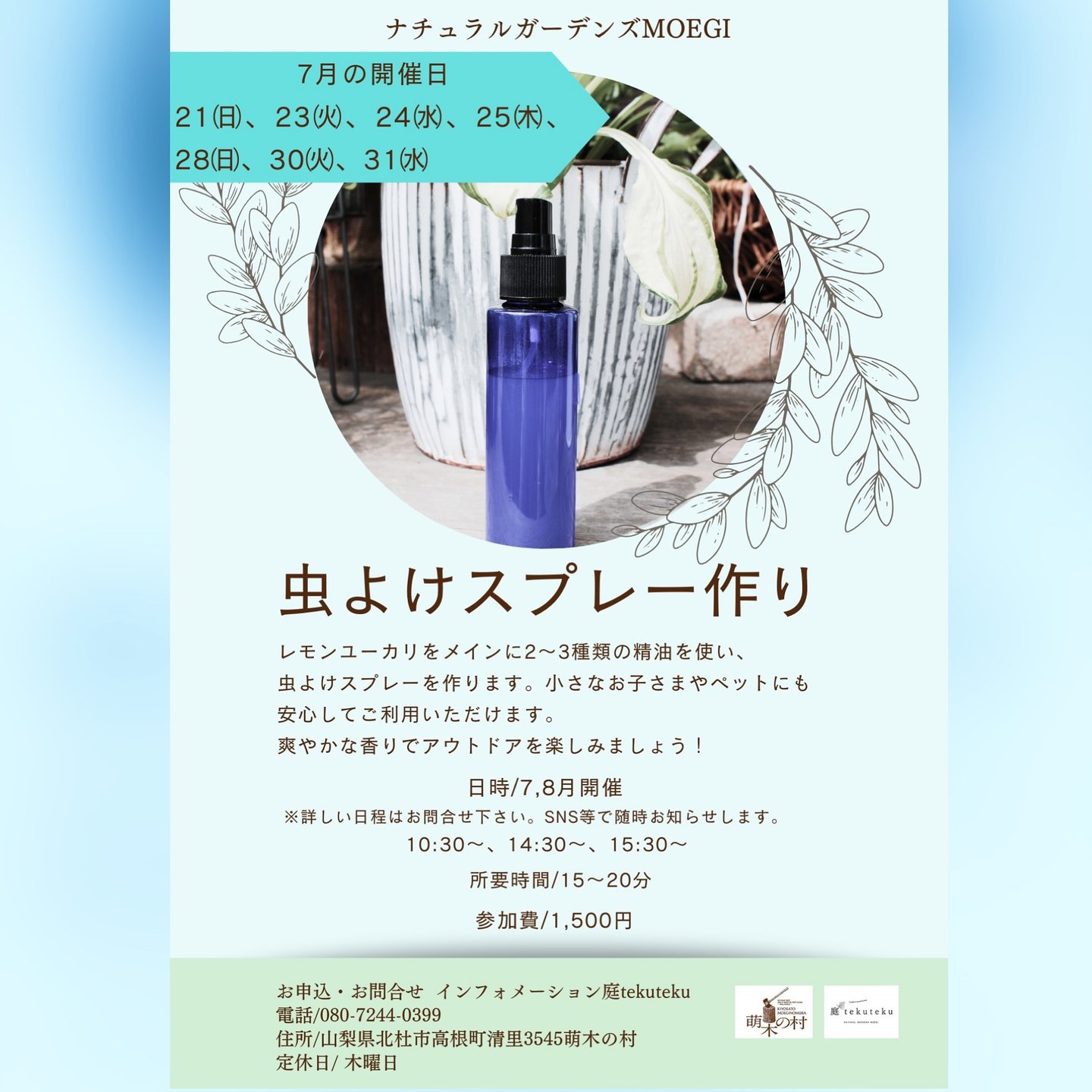 【終了】〈7、8月開催〉爽やかな香りで快適に!「虫よけスプレーづくり」