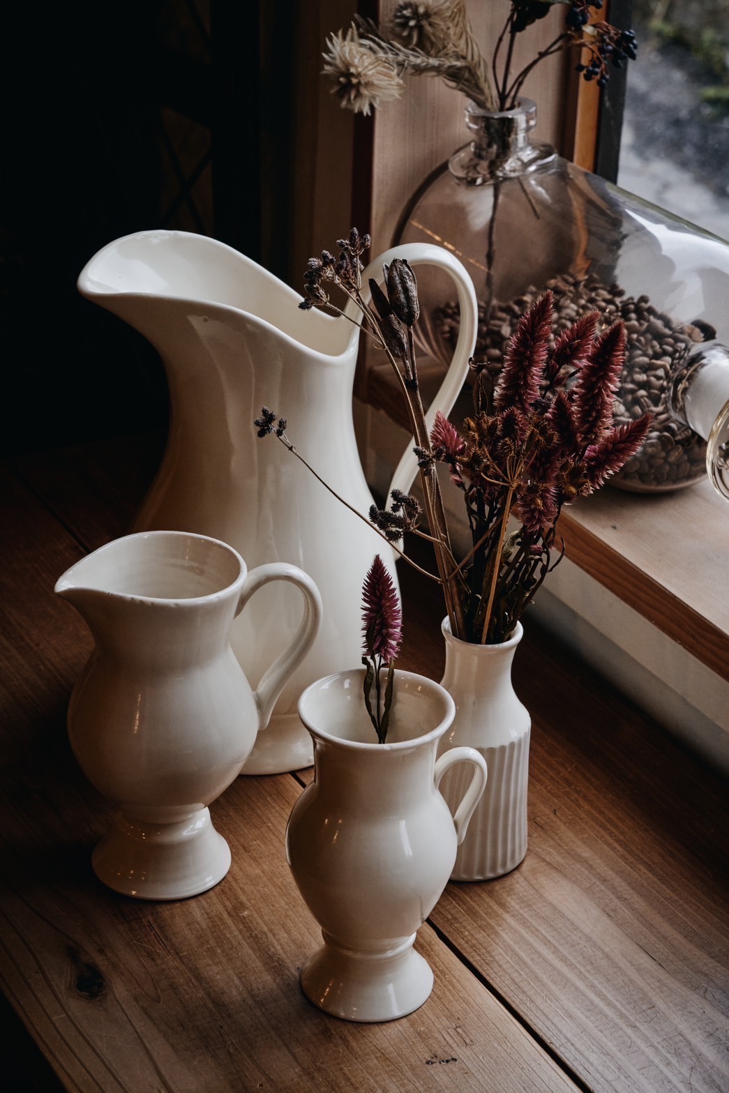 アンティークからひらめきを得た、白を基調とした食器や花瓶などの陶磁器、色とりどりな陶のアクセサリーなどの小物を制作・販売します。