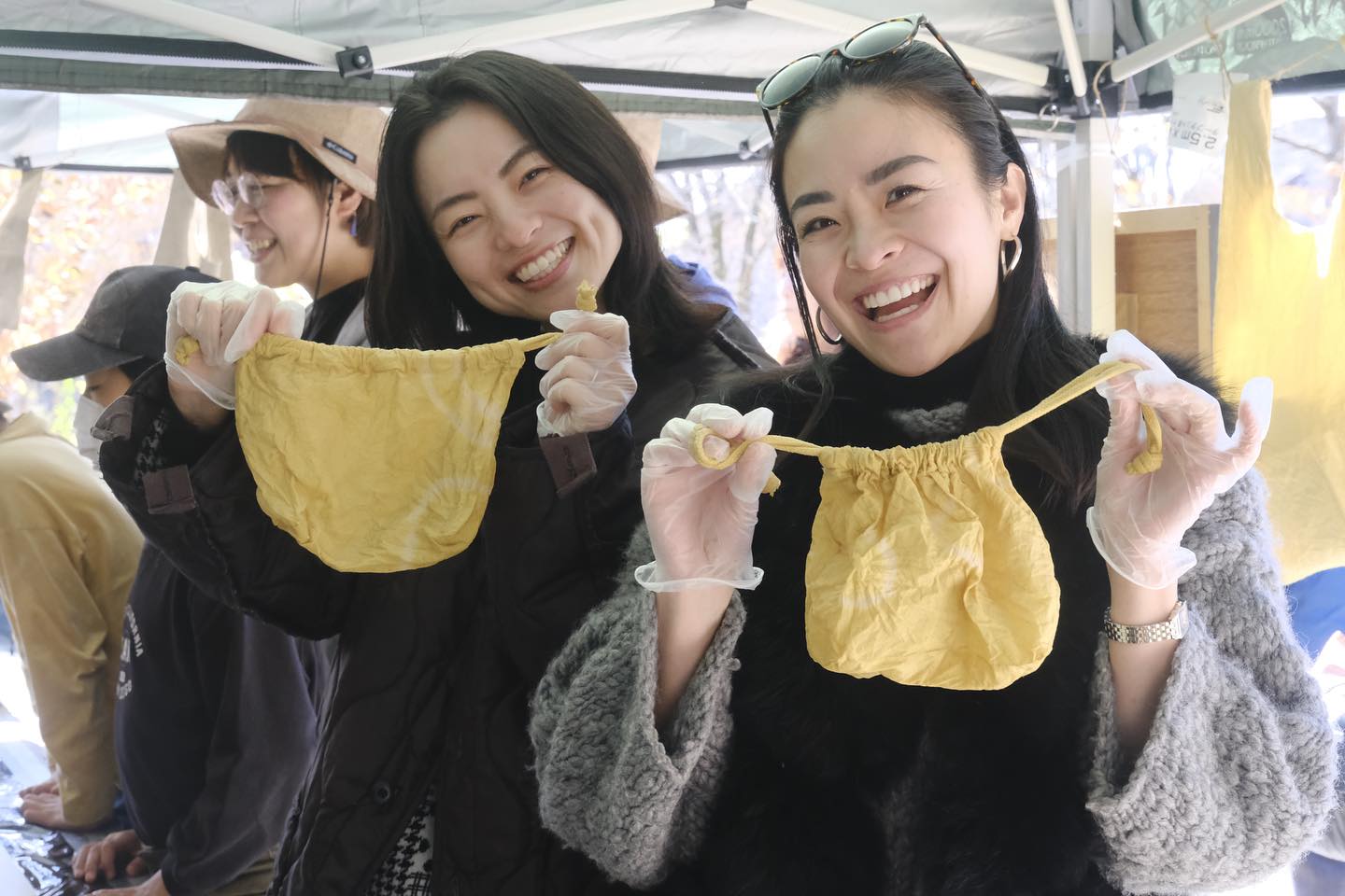 草木染めのバッグを通年で販売中。一つ一つ味があって可愛い!